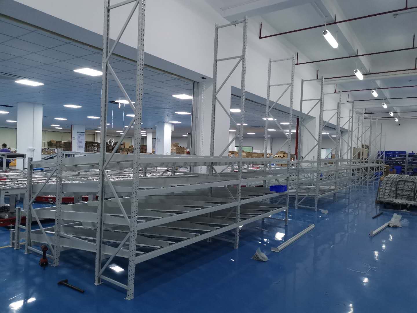 2、貨架層數(shù):4層流利條(鈑金)+4層鋼層板